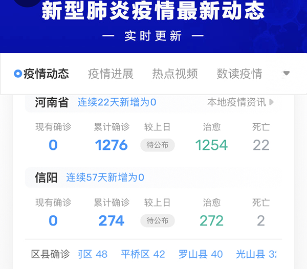 新冠疫情在全國上下齊心的努力下,我們迎來了勝利的曙光,截至昨日,信陽已連續(xù)57天新增為零!如今信陽道路川流不息,各企業(yè)、學(xué)校逐步